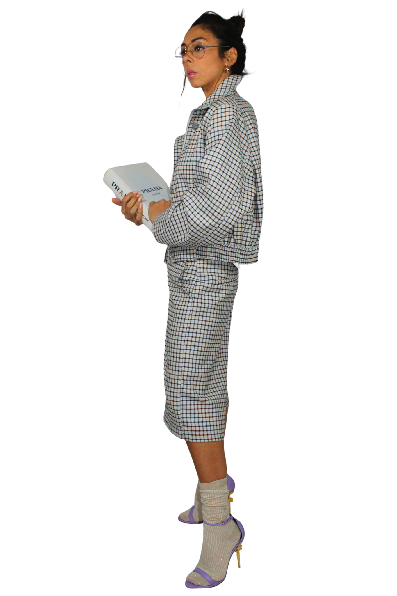 Motivo a quadretti nei toni del rosa, bianco e nero per un impatto visivo forte e sofisticato.